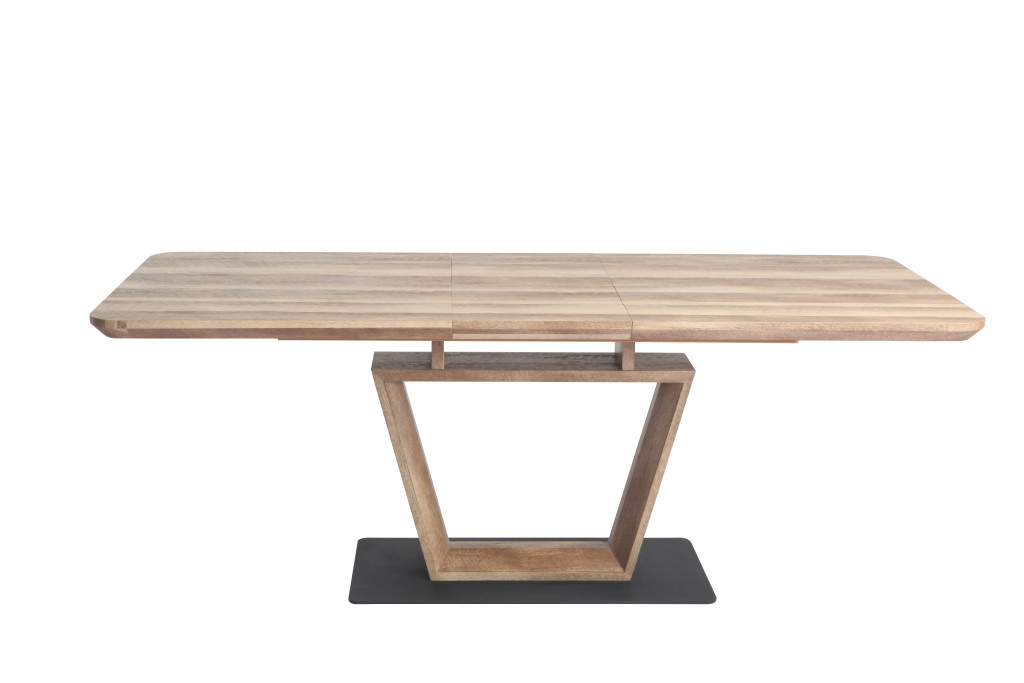 Az asztal lapja fóliázott(kasírozott) MDF, bővítése speciális billenő mechanikával és erős bovdenes vasalattal történik. A talp anyaga festett fém lemez. Összeszerelést igényel. Kétféle színben Sonoma ; Canyon tölgy raktárról rendelhető. Méret: 90 x 160+(40) x 76 cm (Szélesség x Hosszúság x Magasság) Bruttó súly : 84 kg Csomagolás: 1 asztal/ 3 karton