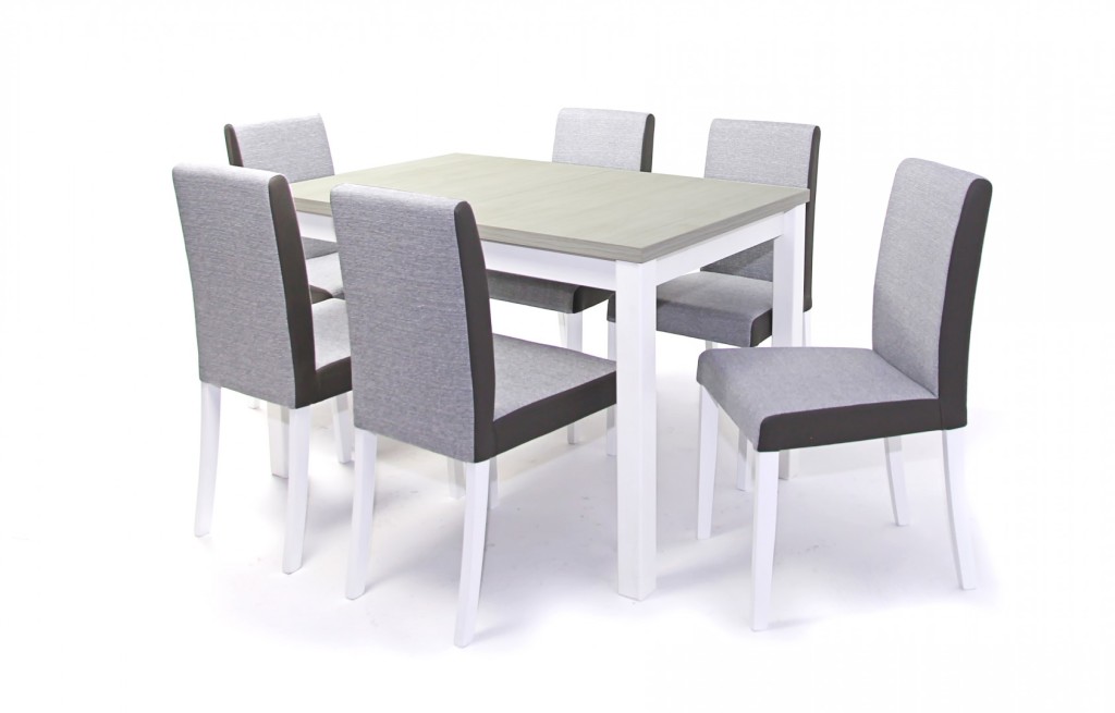 Mokka asztal 120-as Fehér + 6 db Kanzo szék Fehér/Szövetes