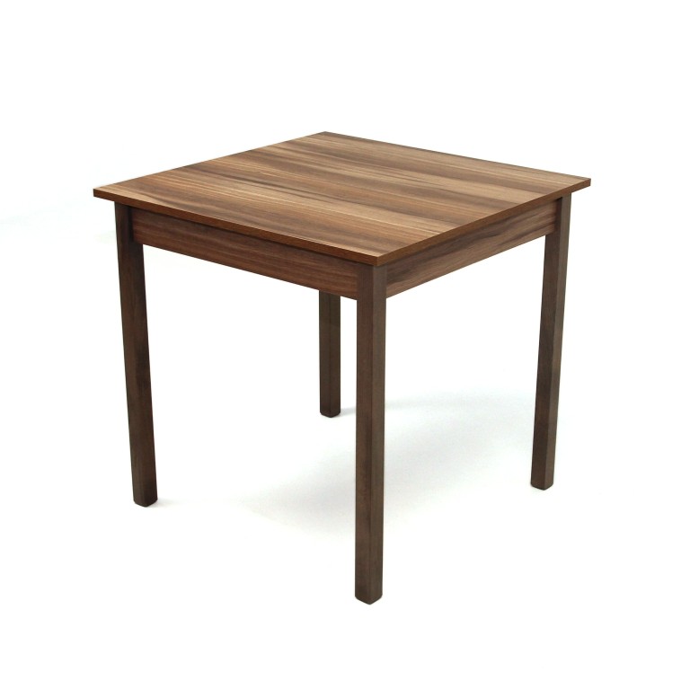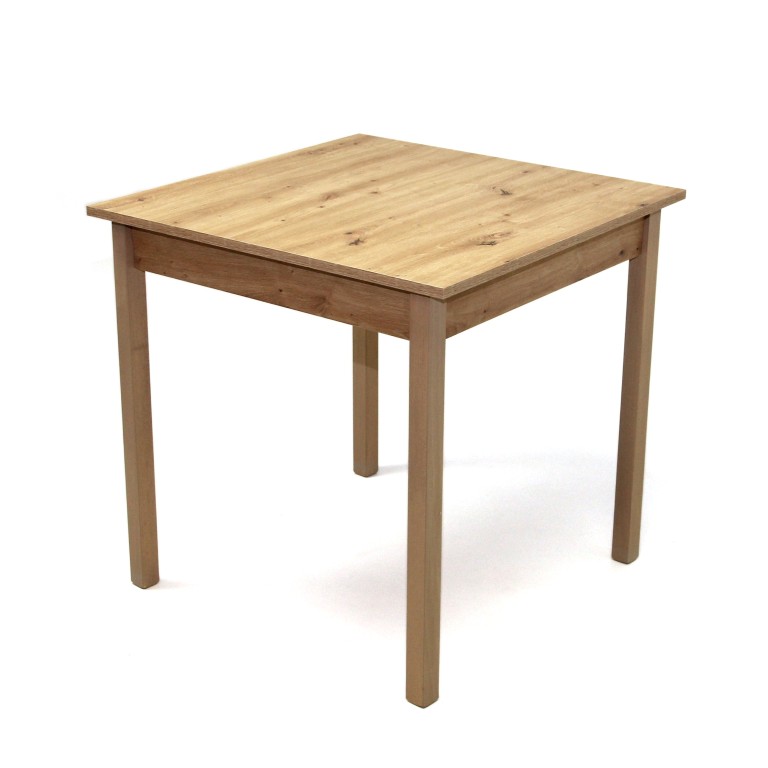 18mm-es laminált faforgácslapból készült fix asztallap, ABS élzárással. Tömörfa, pácolt, lakozott lábakkal.