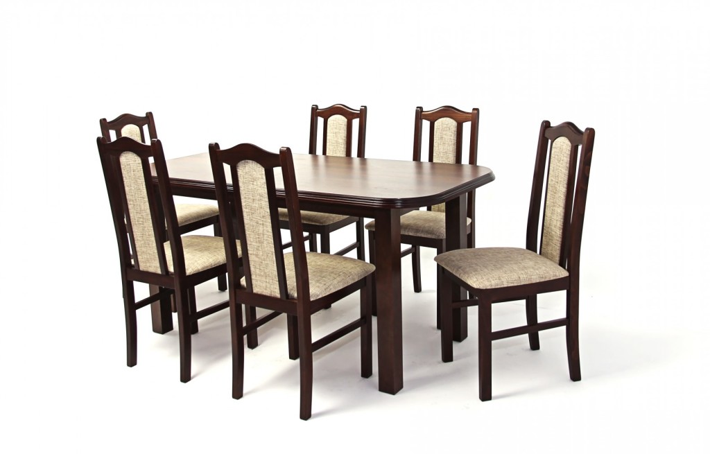 Piano asztal 160-as Dió + 6 db Boss szék Dió