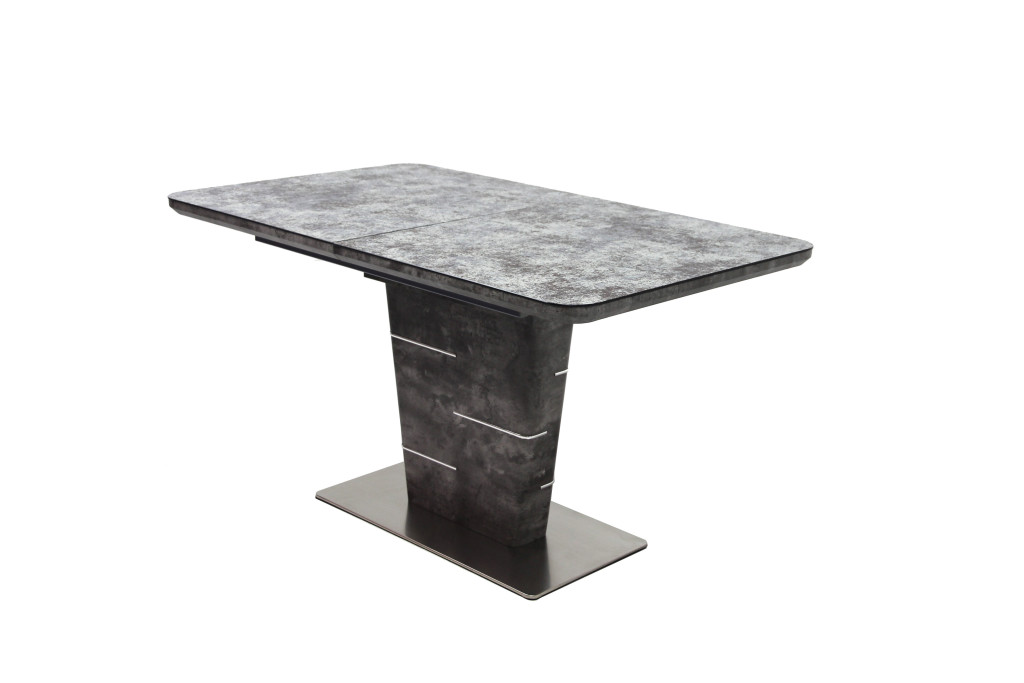 Az asztal lapja fóliázott(kasírozott) MDF edzett üveggel fedve, bővítése speciális billenő mechanikával és erős bovdenes vasalattal történik. A talp anyaga festett fém lemez. Összeszerelést igényel. Cement színben raktárról rendelhető. Méret: 80 x 140+(40) x 76 cm (Szélesség x Hosszúság x Magasság) Bruttó súly : 80 kg Csomagolás: 1 asztal/ 3 karton