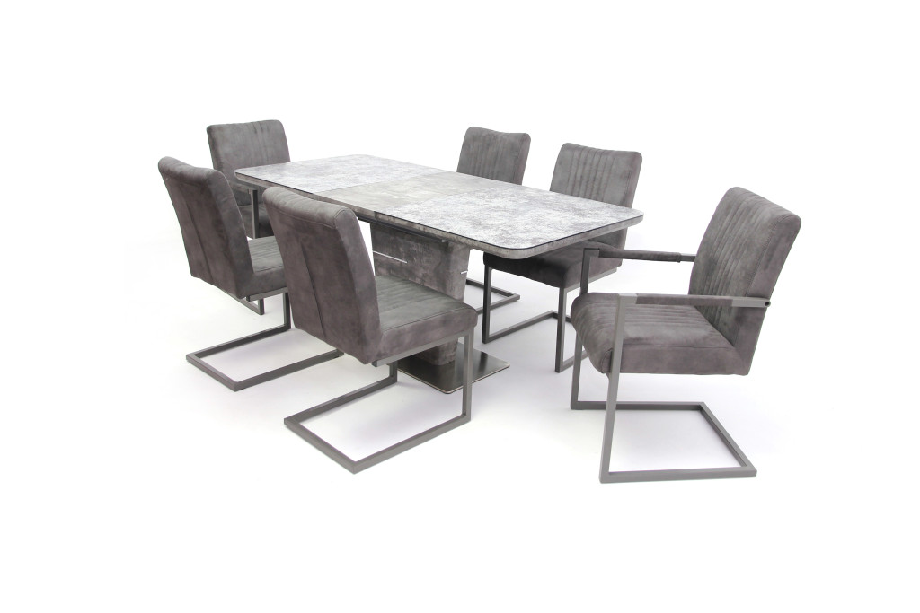 Spark asztal 140-es Cement + 6 db Hektor karfás szék Szürke szövet