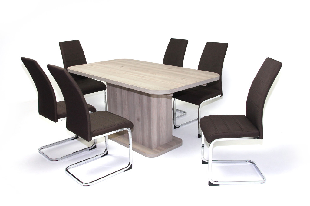 Leon asztal 160-as Canyon Tölgy + 6 db Kevin szék Barna szövet