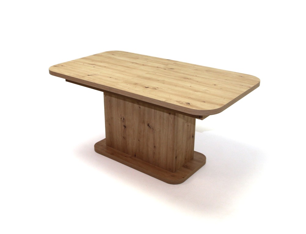 Az asztallap és a lábazat laminált faforgácslapból készült duplungolt kivitellel, ABS élzárással és PU ragasztási technológiával (Víz-, pára és hőálló, tartós kötést biztosít, ennek köszönhetően a bútorok élettartalmát jóval megnöveli!). Nagyobbítás, fém vasalattal. A lábazat központi kialakítású. Méret: 90 x 160+(50) x 75,5 cm (Szélesség x Hosszúság x Magasság) Bruttó súly : 63 kg Csomagolás : 1 db / 2 doboz