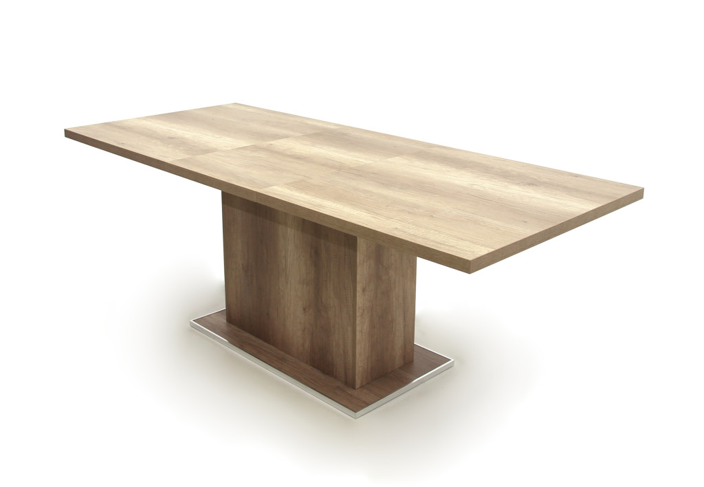 Az asztallap és a lábazat laminált faforgácslapból készült duplungolt kivitellel, ABS élzárással és PU ragasztási technológiával (Víz-, pára és hőálló, tartós kötést biztosít, ennek köszönhetően a bútorok élettartalmát jóval megnöveli!). Nagyobbítás, fém vasalattal. A lábazat központi kialakítású. A talp polírozott alumínium profillal van ellátva. Méret: 90 x 160+(50) x 75,5 cm (Szélesség x Hosszúság x Magasság) Bruttó súly : 63 kg Csomagolás : 1 db / 2 doboz