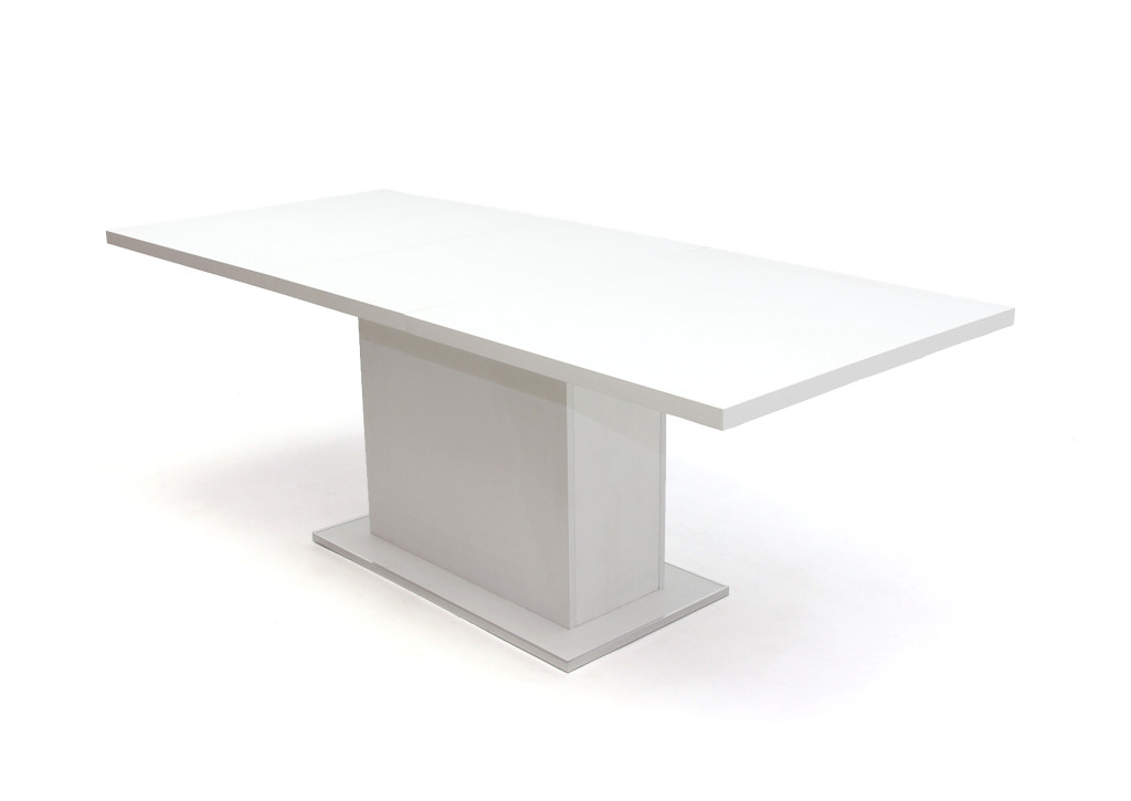 Az asztallap és a lábazat laminált faforgácslapból készült duplungolt kivitellel, ABS élzárással és PU ragasztási technológiával (Víz-, pára és hőálló, tartós kötést biztosít, ennek köszönhetően a bútorok élettartalmát jóval megnöveli!). Nagyobbítás, fém vasalattal. A lábazat központi kialakítású. A talp polírozott alumínium profillal van ellátva. Méret: 90 x 160+(50) x 75,5 cm (Szélesség x Hosszúság x Magasság) Bruttó súly : 63 kg Csomagolás : 1 db / 2 doboz