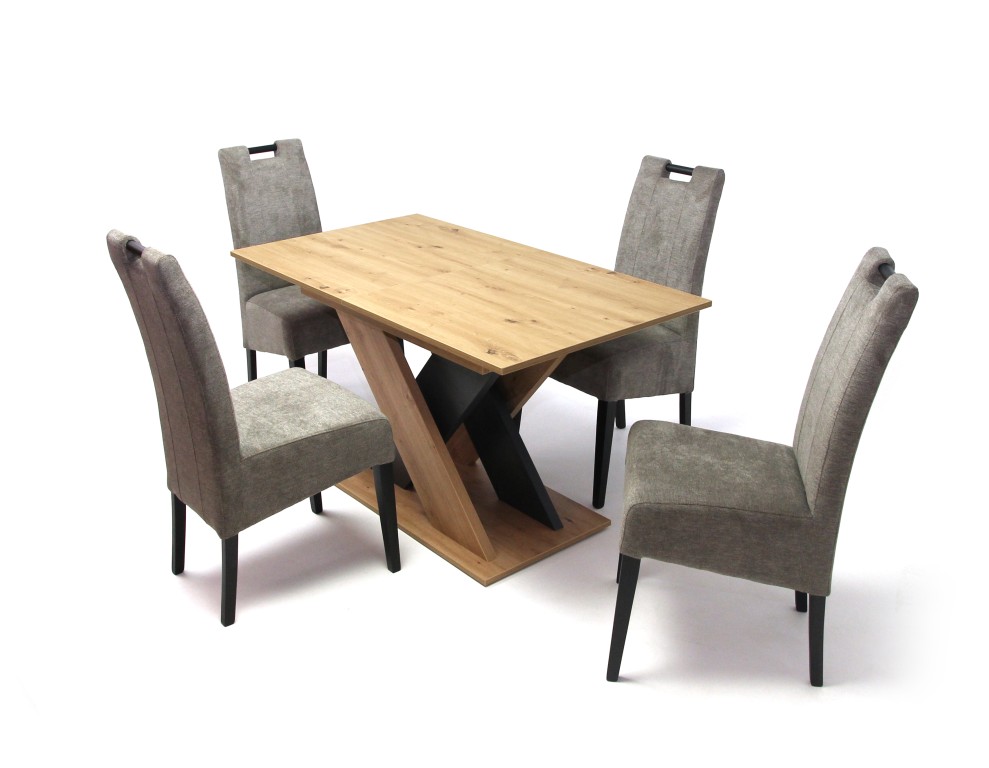 Az asztallap és a lábazat laminált faforgácslapból készült, ABS élzárással és PU ragasztási technológiával (Víz-, pára és hőálló, tartós kötést biztosít, ennek köszönhetően a bútorok élettartalmát jóval megnöveli!). Nagyobbítás, fém vasalattal. A lábazat központi kialakítású. Az asztallap alatt kialakított doboz biztosítja a vendéglap kényelmes tárolását.