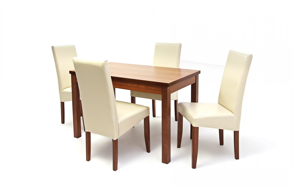 Kis Berta asztal 120-as Mogyoró + 4 db Berta szék Beige/Szilva