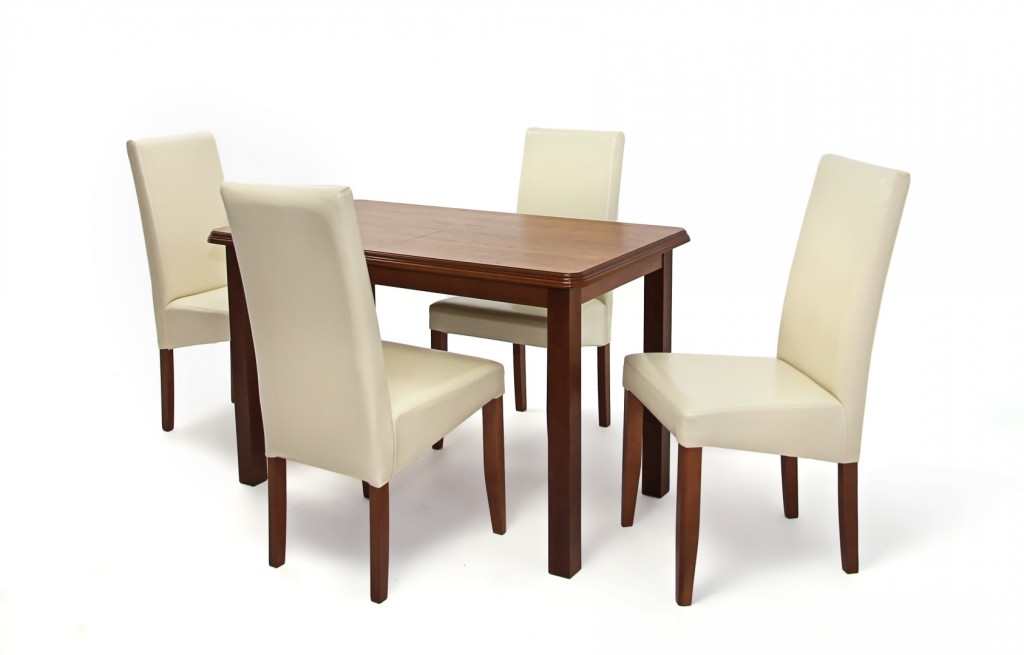 Kis Piano asztal 120-as Mogyoró + 4 db Berta szék Beige/Szilva