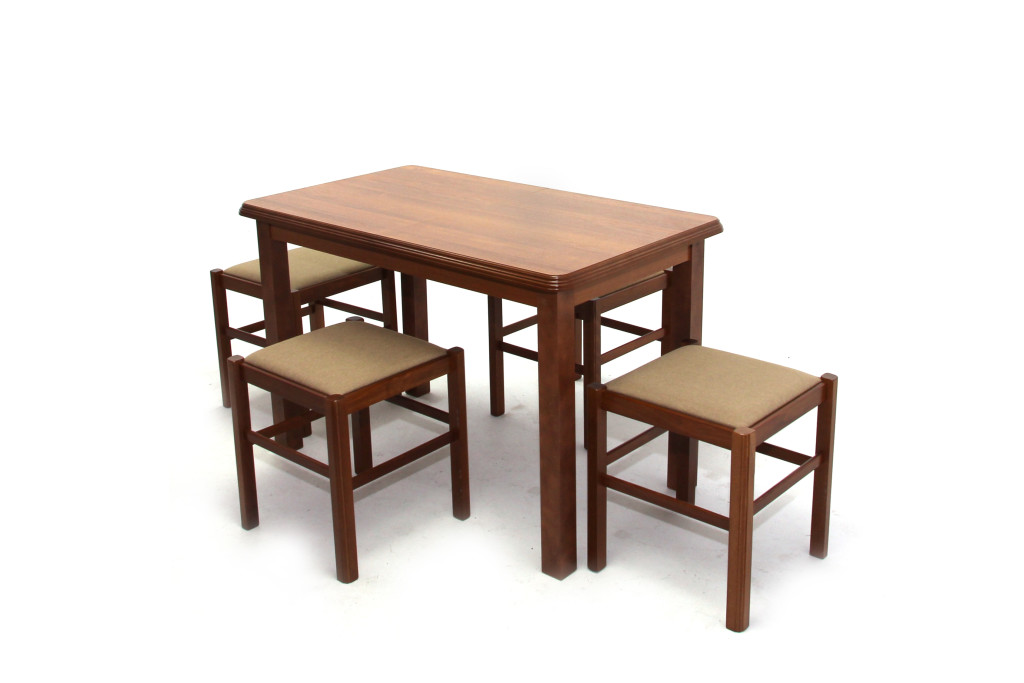 Kis Piano asztal 120-as Mogyoró + 4 db Pizza stoki Világos Dió