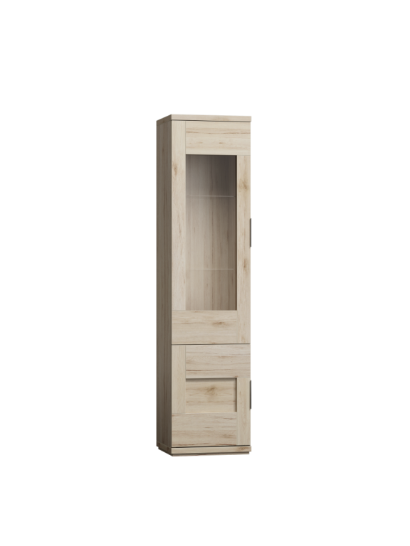 Lapraszerelt bútor, álló vitrin. Méretek : 50x41x190 Bruttó súly : 43,8 kg Csomagolás : 1 db / 3 doboz