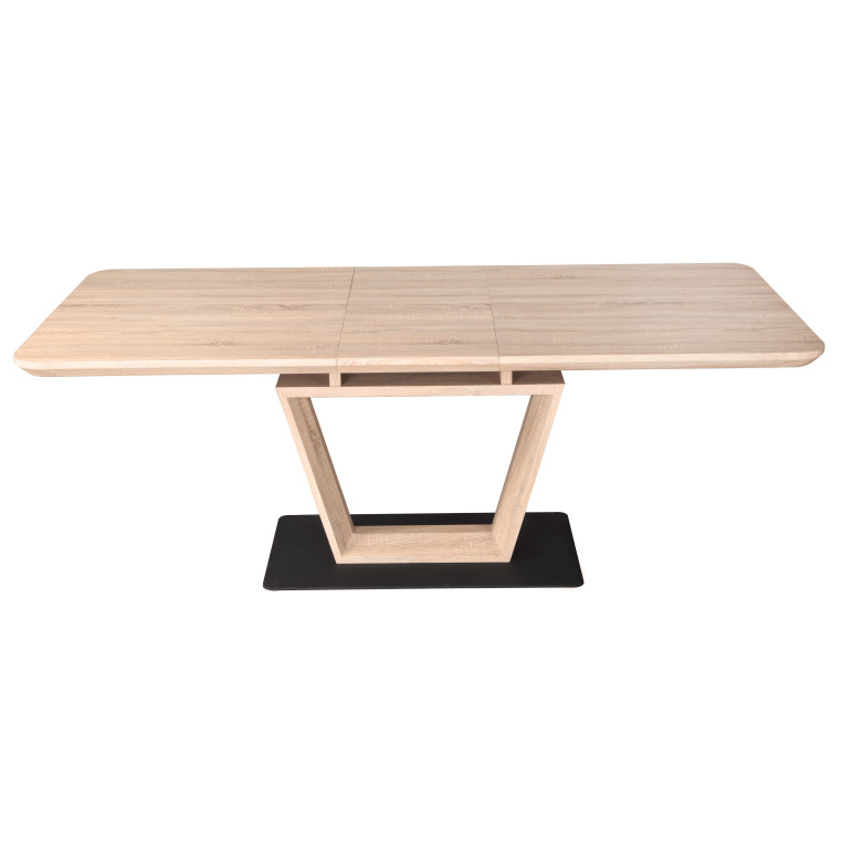 Az asztal lapja fóliázott(kasírozott) MDF, bővítése speciális billenő mechanikával és erős bovdenes vasalattal történik. A talp anyaga festett fém lemez. Összeszerelést igényel. Kétféle színben Sonoma ; Canyon tölgy raktárról rendelhető. Méret: 90 x 160+(40) x 76 cm (Szélesség x Hosszúság x Magasság) Bruttó súly : 84 kg Csomagolás: 1 asztal/ 3 karton
