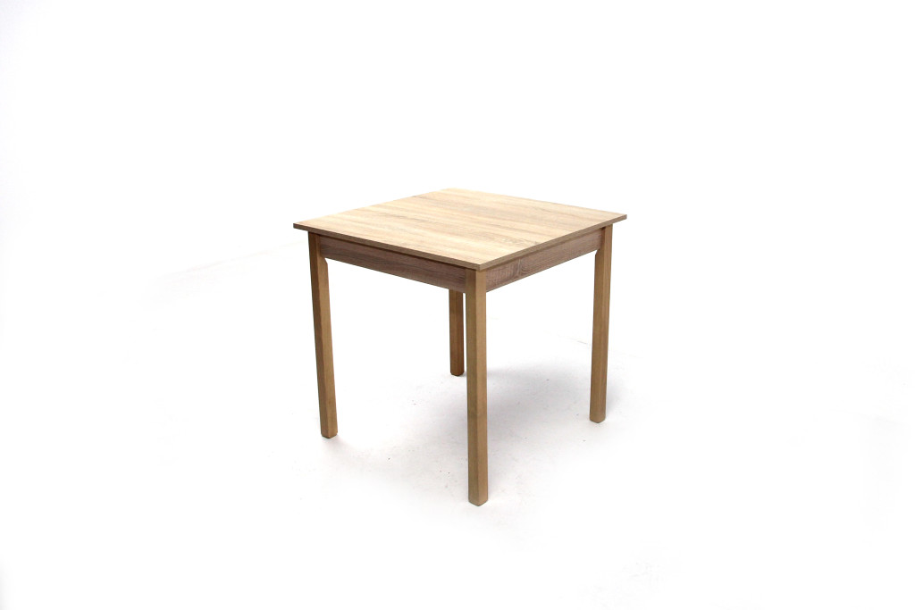 18mm-es laminált faforgácslapból készült fix asztallap, ABS élzárással. Tömörfa, pácolt, lakozott lábakkal.