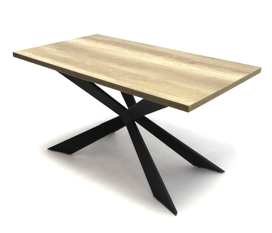Laminált faforgácslapból készült fix asztallap (150x85cm) duplungolt kivitellel, ABS élzárással és PU ragasztási technológiával, fekete festett fém láb.