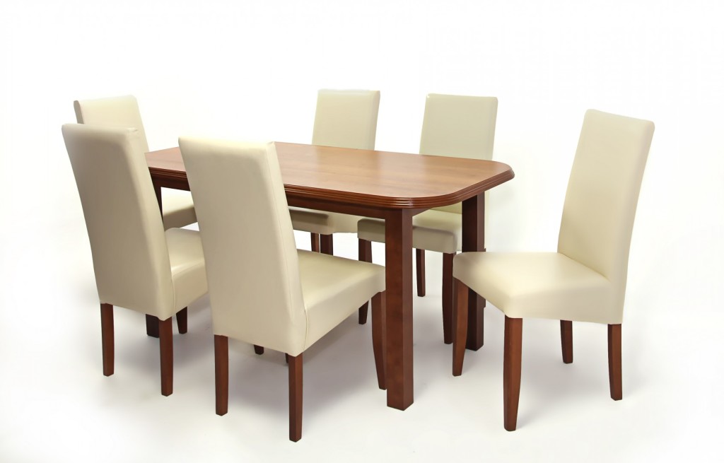 Piano asztal 160-as Mogyoró + 6 db Berta szék Beige/Szilva
