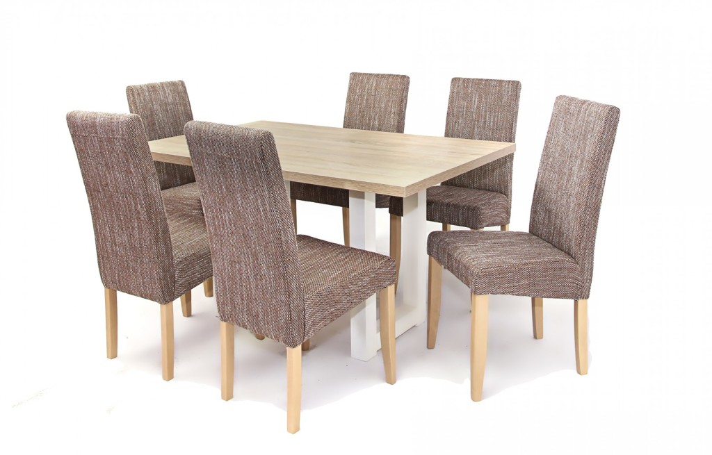 Róma asztal 140-es Sonoma + 6 db Berta szék Világos barna szövet/Sonoma