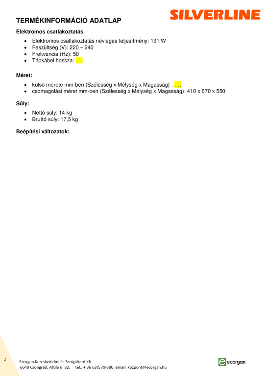 Csatlakozócsonk mérete: 120mm