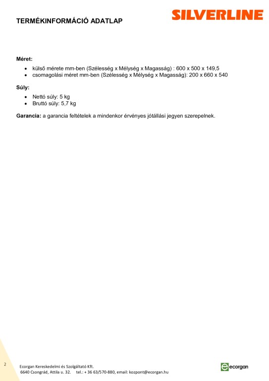 Szabadonál vagy szekrény alű szerelhető páraelszívó, egy fém zsírszűrő, 1*28W halogén világítás, légszállítás (IEC): 143-195 m3/h zajszint: 51-61 dB, csatlakozócsonk: 120 mm E energiaosztály