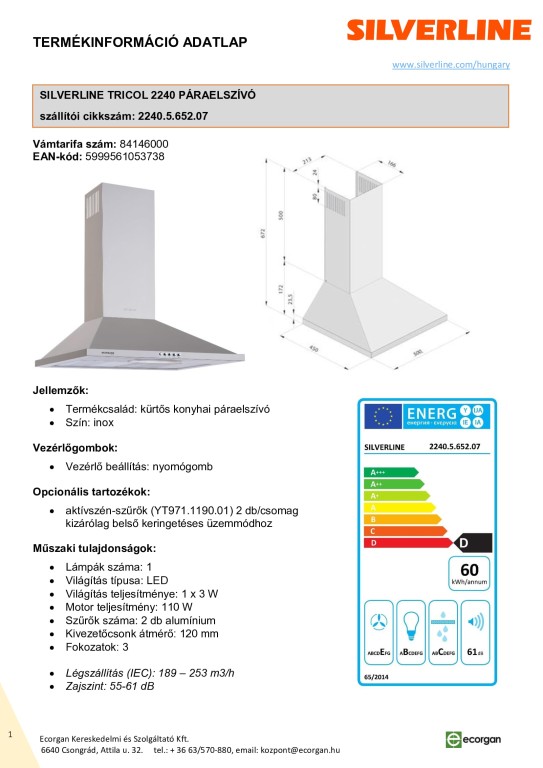 SILV.TRICOL 2240 50 cm elszívó Inox