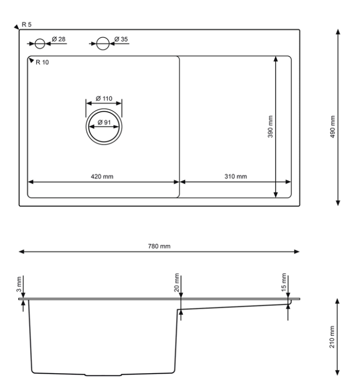 Modern, stílusos mosogatótálca az alábbi alaptartozékokkal: