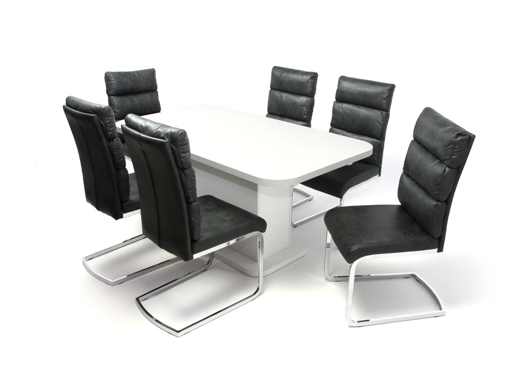 Torino asztal 160-as fehér + 6db Rob szék Szürke