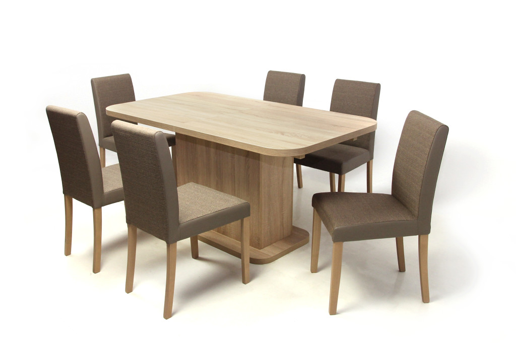 Torino asztal 160-as Sonoma + 6 db Kanzo szék Sonoma/Szövetes